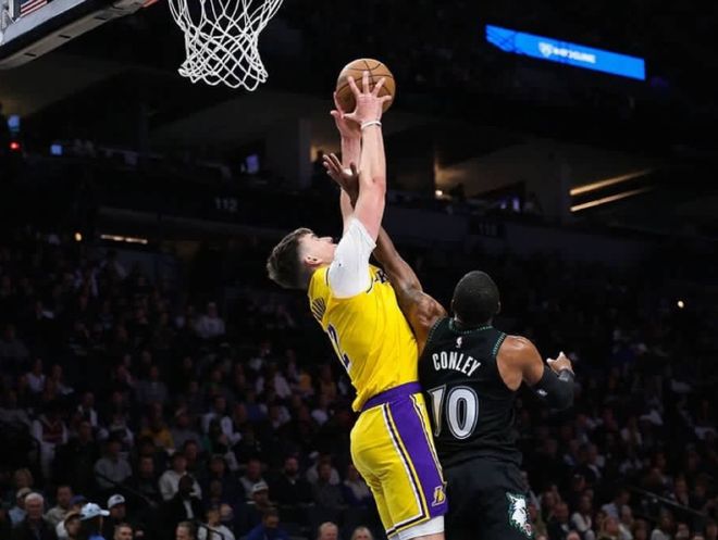湖人队奥斯汀·里夫斯压哨绝杀,粉碎森林狼队反扑希望